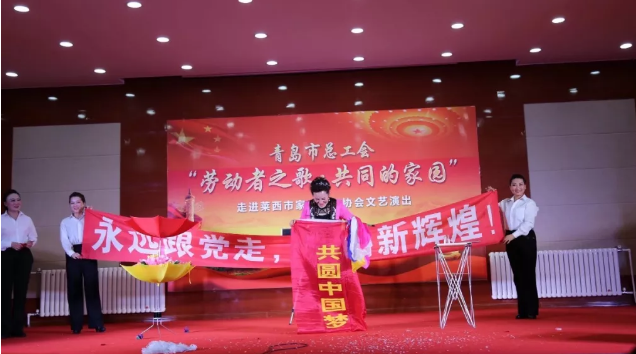 金風(fēng)送爽,萬(wàn)里河山披錦繡;不忘初心,豪情萬(wàn)丈頌祖國(guó)。為慶祝新中國(guó)成立70周年華誕,在全市職工中營(yíng)造出歡樂(lè)祥和的節(jié)日氛圍,青島市總工會(huì)“勞動(dòng)者之歌 共同的家園”文藝演出團(tuán)走進(jìn)萊西市家政服務(wù)協(xié)會(huì)進(jìn)行專場(chǎng)文藝慰問(wèn)演出,12月29號(hào)下午1點(diǎn)30分,在水集街道辦事處禮堂隆重開幕。