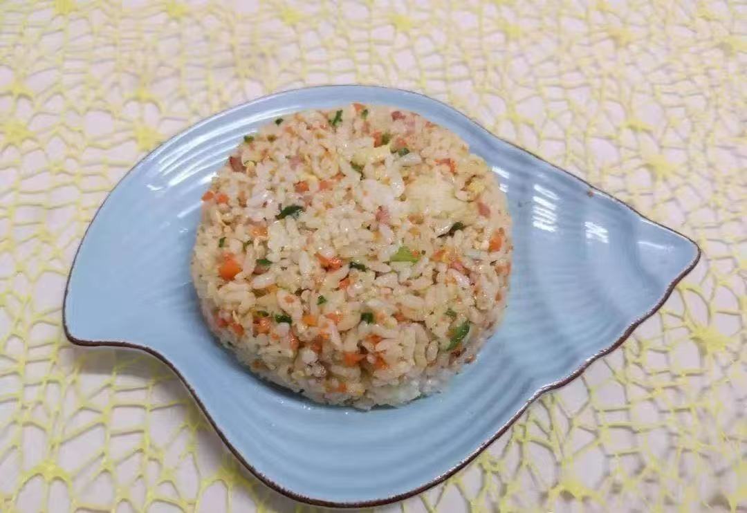 - 做法:胡蘿卜切丁;菠菜切碎;雞蛋炒散。另起鍋爆香蔥末,加入米飯、胡蘿卜、菠菜、雞蛋翻炒調(diào)味即可。