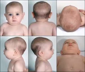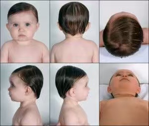 不難發(fā)現(xiàn),正常情況下,嬰兒的頭比較圓,頭型比較對(duì)稱,整個(gè)頭型比較自然,有明顯的后腦勺。